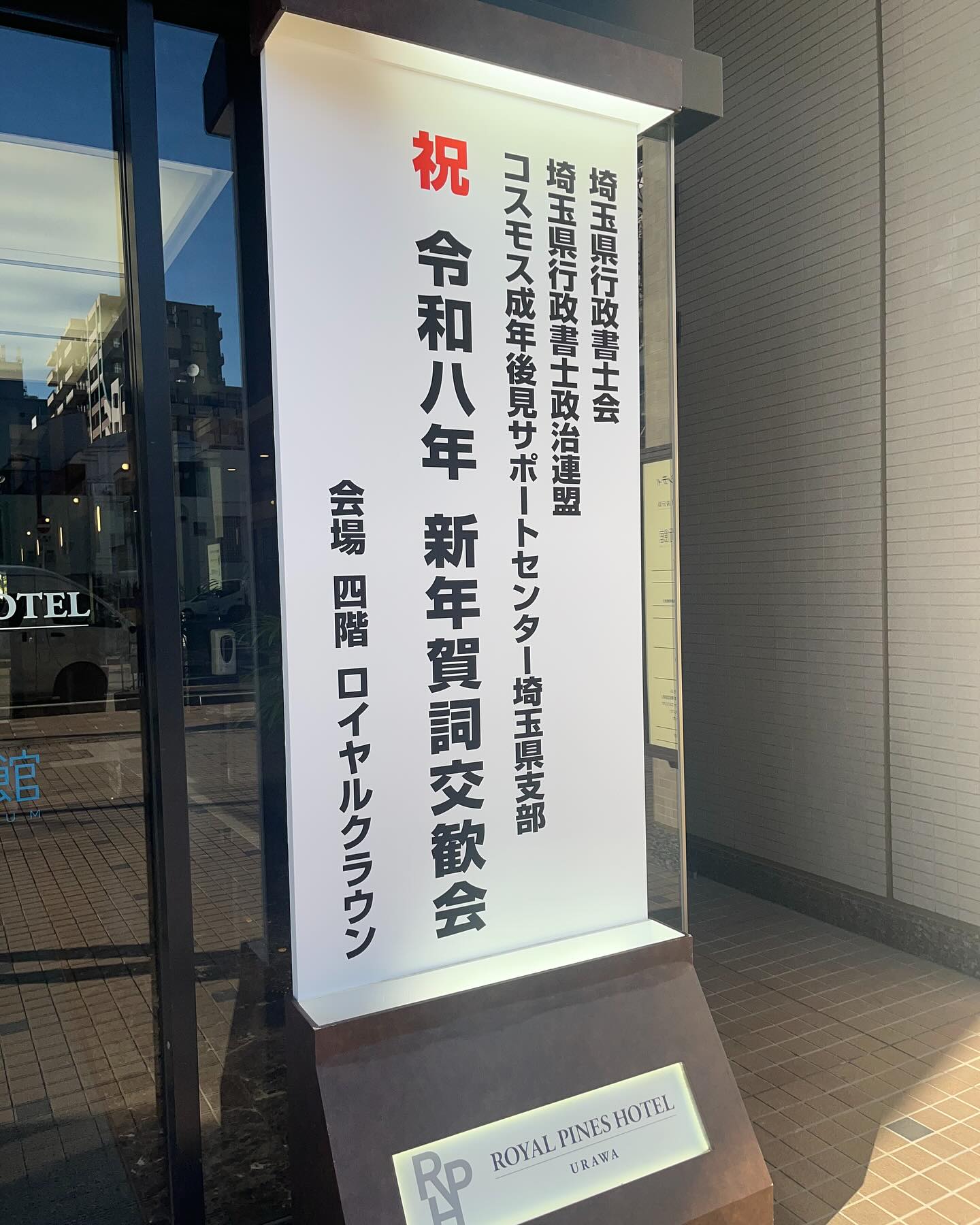 昨日は埼玉県行政書士会、埼玉県行政書士政治連盟、コスモス成年後見サポートセンター共催の賀詞交換会でした。 浦和で4次会まで参加し、疲れましたが良い交流の場となりました^ - ^